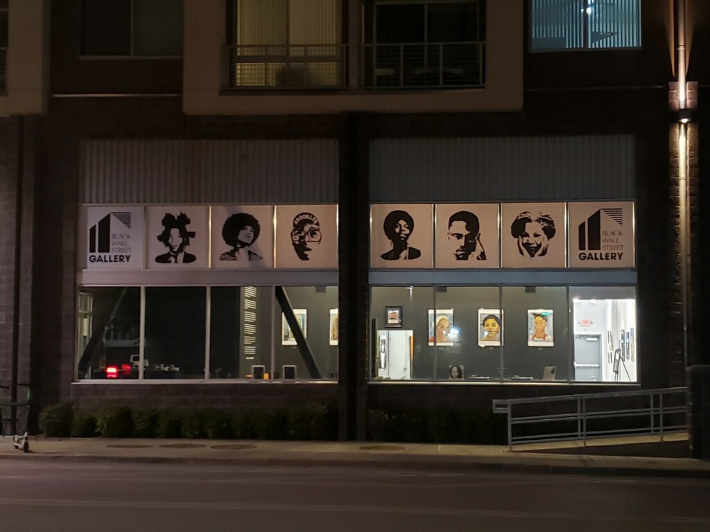 After the park, we all met back up and went to the Black Wall Street gallery, which is filled with images from local black artists. While we didn’t buy much art, Erinn bought 3 T-shirts, 2 buttons and a print, to put in her home office. Adam and Erinn chatted with the guys who worked there and exchanged stories of their diverse upbringings.