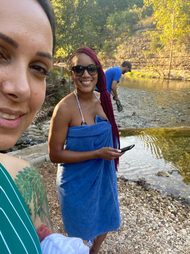 When we returned to site, Otis and his wife came by again, but this time with their two small dogs, Boomer and Lil’ Bit (the most country dog name I’ve ever heard). I naturally ran up to the dogs and gave them lots of pats…Maia followed suit. She quickly befriended Lil’ Bit by retrieving and giving her lots of sticks to chew on while Boomer showered Maia in doggie kisses.