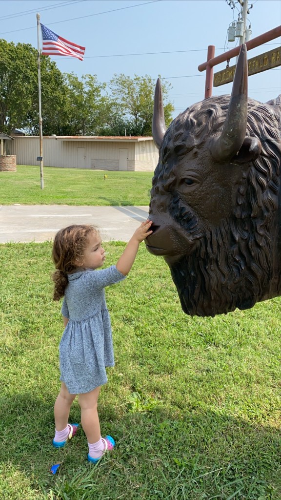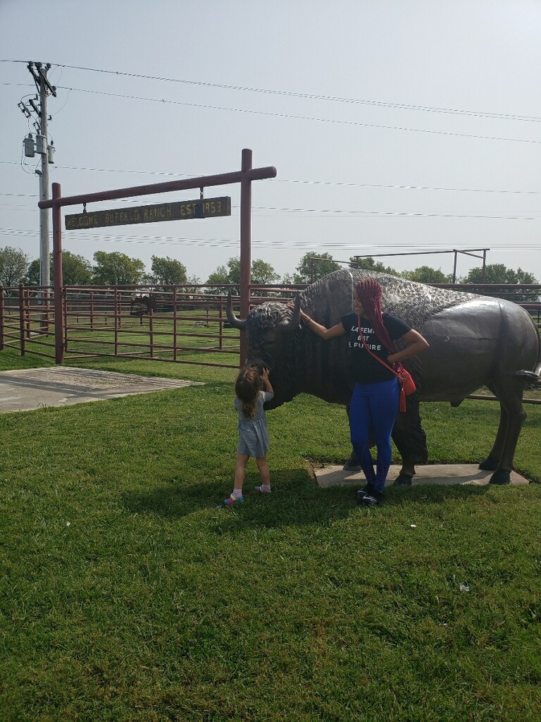 After parting ways with Sepehr, it was on the road yet again for the Welsh/Dumas crew. On the way out of the Grand Lake area, we stopped at a Buffalo Ranch that was connected to a truck weight / gas station. Maia saw her first up close group of Bisons. A baby calf wobbled her way over to her mama and demanded milk. It was an unexpected but fun little stop.